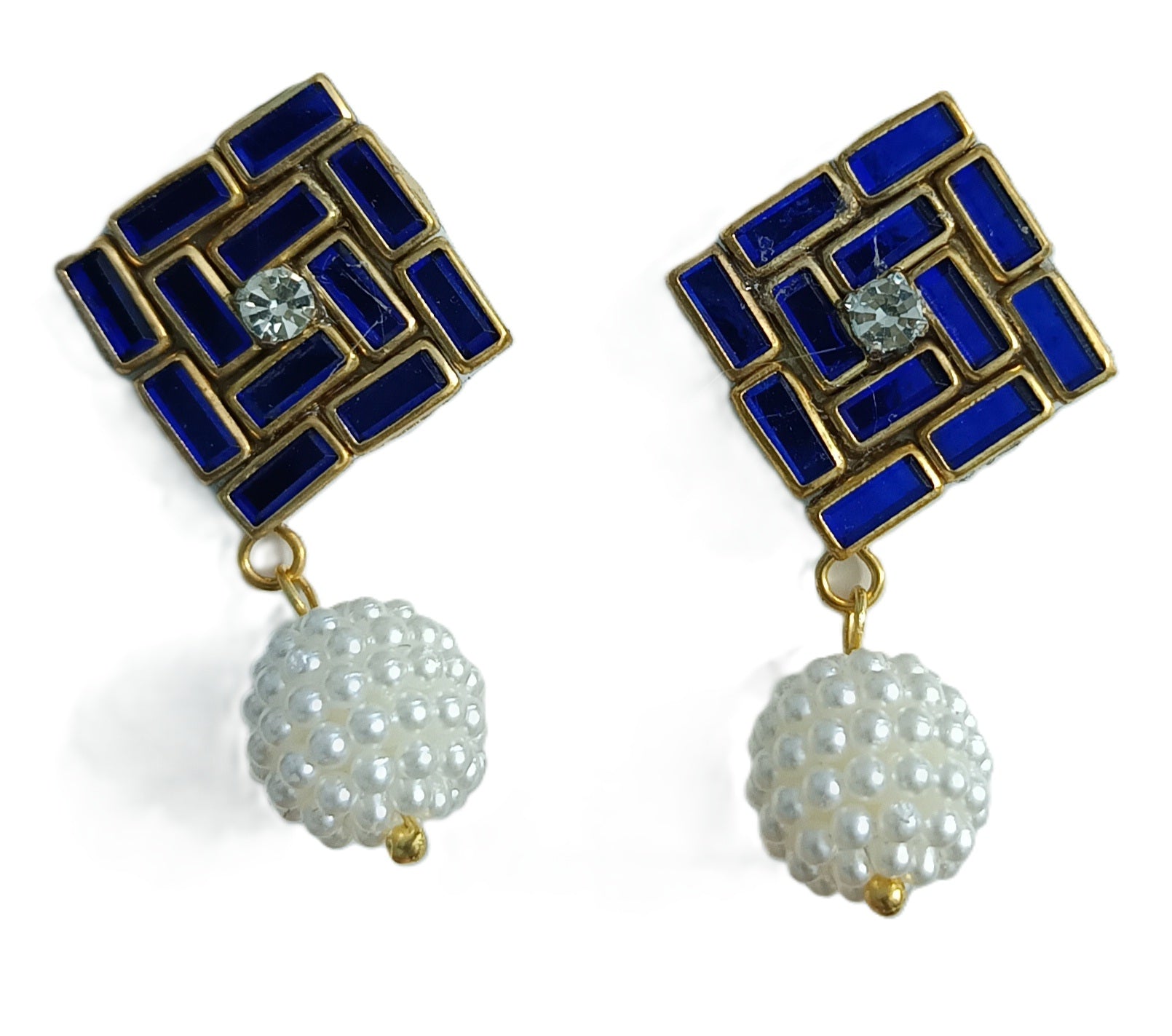 Handmade kundan stone Swasthik shaped Earrings. Customized as per the requirement. Color and shape customization available. These are made using Rectangle Shaped kundan stones in various colors.