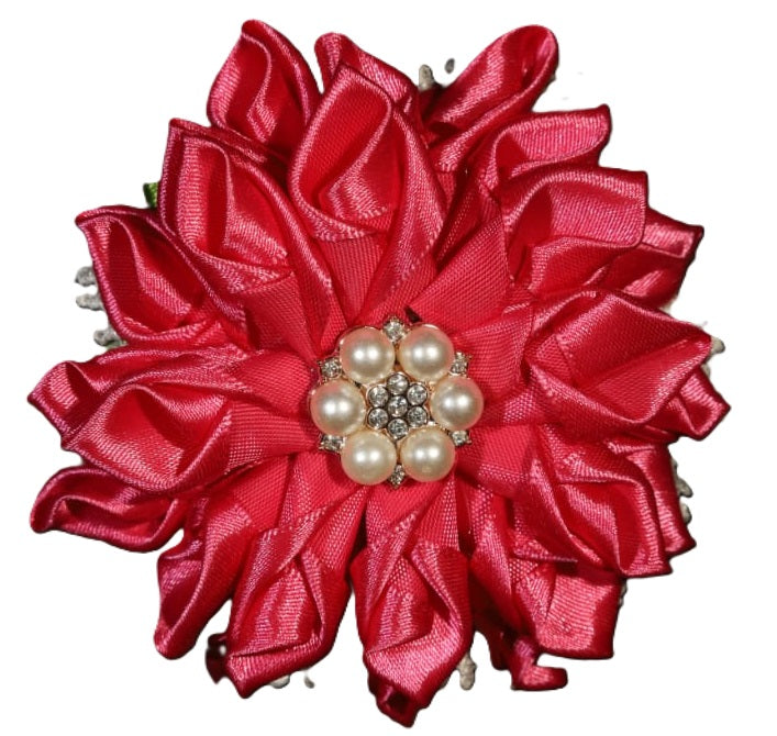 Grand Looking Big sized single piece Ribbon Flower Hair Clip. Available in different colors.